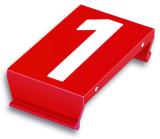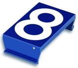 Kumskilt i støpt aluminium. Avstand til kum og kumnummer slås inn i felt. Retningen risses inn i siktemerke. Aluminium er et slitesterkt materiale som passer både innendørs og utendørs.