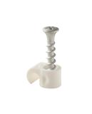 Plast klips med skrue PH2 for feste av rund kabel. Farge hvit. Korrosjonsklasse C4, kan brukes inne og ute.
