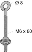 Øyebolt M6x80mm. Øyebolten bør ikke brukes som neste oppheng på kabelbaner med bredde over 150 mm.