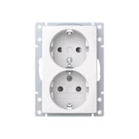 ELKO Plus dobbel stikkontakt innfelt med jord, barnevern og delt sokkel. Stikkontakten bygger kun 11 mm ut fra veggen. Plus dobbel stikk delt, har delt sokkel slik at den kan styres med 2 separate bryterledninger. Disse må alltid komme fra samme kurssikring. Stikkontakten passer kun i 1,5 veggboks, dersom det er montert enkel veggboks kan en forhøyningskappe benyttes. Plus dobbel stikk delt har delt sokkel slik at den kan styres med 2 separate bryterledninger. Disse må alltid komme fra samme kurssikring. OBS: Det styrte uttaket skal alltid merkes med etiketten som følger med kontakten.