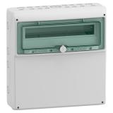 Kaedra IP65 kapslinger og tilbehør, Mini Kaedra og vanlig Kaedra og Kaedra apparatskp for ikkemodulært materiell. leverens i to varianter, Rene kapslinger for DIN skinneprodukter, og med Din skinne+ åpninger for PK industristikk og betjeningsmatriell. Disse kapslingene er beregnet for separat montering , og kan ikke bygges sammen med øvrige Kaedra kapslinger. Beregnet for last inntil 63A. Standard KAEDRA kapslinger er beregnet for spenninger opp til 690V. Har farge RAL7035 og transparang grønn buet dør.Driftstemepratur -20°C til +60°C. IK09 mekanisk styrke, Godkjent etter IEC 60439-3. Klasse 2, dobbeltisolert. Selvslukkende materiale etter IEC 698-2-1: 650°C. en kapsling består av : en bunndel med ett hull for hurtigfeste og fire avlange, skråstilte festehull i hvert hjørne, metriske svekkinger i 4 av sidene for kabelinføring, DIN skinne, Jordskinne, Frontdel med transparent deksel, kan forsynes med nøkkellås,, dekkplugger for å oppnå Klasse 2, merkelapper og holder.