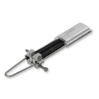 Vanntett kileklemme for avspenning av belagt line. Klemmen festes utenpå belegg. Enkel montasje og justering av pilhøyde. Med øye for talje.