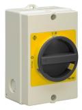 BWS416TPSN, 16A, 7,5kW, 4P, sidebetjent, IP54, grå plastkapsling, Normer: EN 60947-3 Låsbart sort bryterhåndtak (1-0/ON-OFF). Dersom det er behov for flere låser, kan låsebøyle L6 benyttes. Leveres med 1NO hjelpekontakt. Kabelinnføringer over/under: 2xM25 / 2xM25. Når det gjelder ytelser for andre driftspenninger, henviser vi til våre produktkataloger.