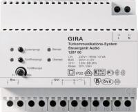 VideoTerminal er et komplett formontert svarapparat med 14,48 cm aktivt TFT-fargedisplay (5,7") og håndfrifunksjon for Gira porttelefonsystem. VideoTerminal har følgende produktegenskaper: oStort 14,48 cm aktivt TFT-fargedisplay (5,7") med oppløsning på 640 x 480 bildepunkter. oTekstvisning (OSD-funksjon) på TFT-fargedisplayet til visning av det innkoblede kameraet og til menystyring for sluttkunde og installatør. oInstallasjon som enkeltapparat, innfelt eller utenpåliggende (monteringsramme 1252 04 eller1251 04) eller i apparatkombinasjon i forbindelse med den modulære funksjonssøylen 1371 00, 1372 00, 1373 00. oBakgrunnsbelyst betjeningsratt for dreiing og trykking, til mottak av samtaler og menystyring. oOptisk tilbakemelding på betjeningsrattet via grønn eller rød LED-indikasjon, avhengig av anleggsstatus. oFire funksjonstaster med fast konfigurasjon for 1. Henting av menynivå og kamerainnkobling og -omkobling 2. Slå på lys 3. Slå ringetone på eller av 4. Åpne dør oOmkobling av kamera - direkte valg av inntil tre fargekameraer. I displayet vises det med tekst hvilket kamera som styres for øyeblikket. oBetjeningshjul for menystyring Som sluttkunde: Lysstyrke, fargemetning, kontrast, displayets innkoblingstid Som installatør: Valg av språk (tysk/engelsk), frekvensinnstilling, ledningens terminering, versjonsindikasjon, fabrikkinnstilling, display, inn-/utkobling, LED-belysning av/på, lysstyrke, fargemetning, kontrast, displayets innkoblingstid. oHøy bildekvalitet også ved skrå synsvinkel. oBakgrunnsbelysning med CCFL-rør med lang levetid oFrihåndsfunksjon - talestyrt samtaleveksling med korrigering av ekko og bakgrunnsstøy. oViderekoblingsfunksjon ved høy omgivelsesstøy under taleforbindelse. oSignaloverføring av audio- og videodata via polaritetssikret og kortslutningssikker Gira 2-tråds-buss. oParallellkobling av opptil 3 stk. VideoTerminal er mulig. oEnmanns igangkjøring pga. enkel igangkjøringsprosedyre. oUlike ringetoner for døranrop, etasjeanrop og internanrop. oValg av 5 forskjellige ringetoner som kan tilordnes individuelt til de enkelte ringeknappene. oLydstyrken på ringetone og tale kan stilles inn i 2 trinn. oUtkobling av ringetone - optisk visning av døranrop når ringetonen er utkoblet. oDøråpnerautomatikk som kan kobles til: Når funksjonen er innkoblet, aktiveres døråpneren automatisk når noen ringer på dørstasjonens ringeknapp. oGratis taletrafikk internt i huset (internanrop) med inntil 10 ekstra svarapparater. oAutomatisk innkobling av TFT-displayet ved innkommende taleanrop. oLytte- og kikkesperre er integrert. oFor forsyning av apparatet med 24 V DC spenning ± 10 % kreves to ekstra ledere til VideoTerminal. Spenningsforsyningen skjer via spenningsforsyning for porttelefon art.nr. 2570 00. Spenningstilførsel:24 V DC ± 10%.Tilkoblinger:2-leder-klemmer 2-leder-bus 2 skrueklemmer for spenningsforsyning 24 V DC ± 10% 2 skrueklemmer etasjeringeknapp 2 plugglister Systembus.Mål:B x H x D 182 x 240 x 52 mm.Anbefalt montasjehøyde:1,60 m.Temperaturområde:-5 °C til +40 °C.Fargesystem:PAL.Ledningslengde spenningstilførsel - VideoTerminal:maks. 80 m ved kabel-ø 0,8 mm maks. 50 m ved kabel-ø 0,6 mm..