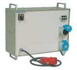Trafo 3-fase 63 kVA 230/400(omv) Kapslet 3-fase transformator, finnes i effekter opp til 630 kVA. Standard utførelse leveres med atskilte primær- og sekundærviklinger, såkalt skilletransformator, som lager et "nytt nett" der alle eventuelle jordfeil er eliminert. Velegnet når det er behov for å transformere spenning opp eller ned, eller skilletransformator. Eks. el-motorer, kompressorer, kjøleanlegg, vaskeautomater, og til å opprette IT- eller TN-S anlegg.