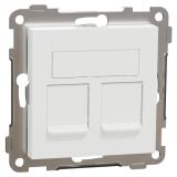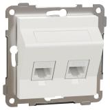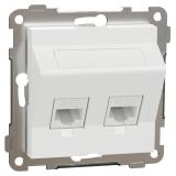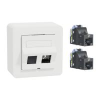 ELKO modulæruttak rett, levert med 2x kat 6A STP Keystone. Universalt hullbilde og innfesting tilpasset både Keystone og S-One konnektorer. Konnektorene sneppes direkte inn i festerammen, og den medfølgende 2-hulls sentralplaten sneppes på plass. Verktøyfri konnektor, skjermet kat. 6A, tilkobling av lederne skjer uten verktøy, lederne settes inn iht. fargekode T568B/T568A. Klipp bort overskytende del av lederne, og klem i sammen konnektoren. Dette gir en sikker og enkel terminering. Kategori 6A 500 MHz iht. NEK-EN 50173-1 2018 og NEK EN 60603-7-51. Uttaket leveres med støvdeksel og vendbart merkeskilt. Monteres i 1- til 5-hulls ramme, innfelt eller i høy påveggskappe eller hjørnekappe. Mål på produktet er (B) 74,2 mm x (H) 74,2 mm x (D) 40,6 mm. Kompletteres med design ramme. Kapslingsklasse IP20. Farge: polarhvit (RAL9010).