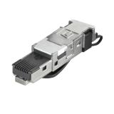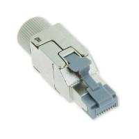 Verktøyfri modularkontakt skjermet kat.6A, tilkobling av lederne skjer uten verktøy på det hengslede koblingsstykket, lederne settes inn i hht fargekoden T568B/T568A. Kontakten klemmes sammen, deretter klippes overskytende ledere bort. Sørg for at ytterkappen er fjernet slik at folieskjerm / flettet skjerm treffer de fjærbelastede hengslede metallokkene i bakkant, press deretter de to metallokkene sammen. . Dette gir en sikker og enkel terminering. Kontakten har Keystone hullbilde tilpasset ELKO sentralplater, uttak og patch paneler. Kategori 6A i hht. ISO/IEC 11801, IEC 60603-7-51, ANSI/TIA-568-C.2.
