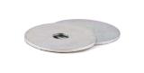 Rundskive med fas, tykk og stor ytterdiameter. I henhold til SS 1466. Stål elforzinket.