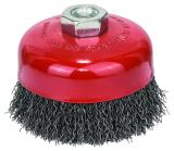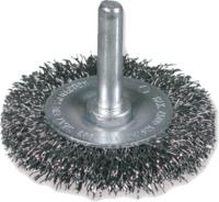 Aksialbørste med krympet tråd, industriell kvalitet, for bruk på vinkelslipere. Fleksibelt børstemateriale som tilpasser seg perfekt til arbeidsstykkets kontur. Den optimale arbeidsvinkelen er synlig på børstens form. TÜV-Süd-sertifisert (sikkerhetstestet, produksjonsovervåket). Bruksområde: Rengjøring, fjerning av maling, rust, slagg, blå misfarging.