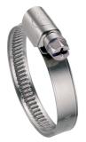"Blått hus". ABA Original, 12 mm bredde, helpresset og meget sterkt snekkehus. ABA NOVA, 9 mm bredde, puzzellåst snekkehus. Opprullede båndkanter og glatt båndunderside som skåner slangen. Sekskantskruehode 7 mm. Større størrelser på slangeklemmen, opp til 307 mm, på forespørsel.