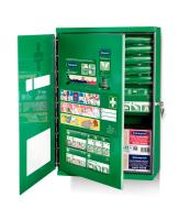 Førstehjelpsstasjon med produkter for de fleste typer skader. Nå også med integrert Soft Foam Dispenser 2 meter. Inneholder også brannsårkompresser og øye- og sårvaskespray. Gjennomsiktig dør beskytter mot støv og fuktighet. Plasterautomat med påfyllingsnøkkel. Ekstra oppbevaringsplass for eget utvalg av produkter.