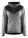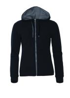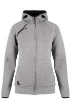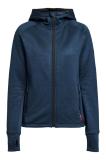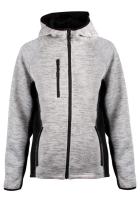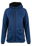 Strikkejakke dame i stretch med børstet innside. Forsterket med softshellmateriale i skuldre, sider, linning og hette. Forlenget rygg. YKK® glidelås i front som går helt opp i kraven, hakebeskyttelse. Forlommer med YKK® glidelås. Venstre brystlomme med YKK® glidelås. Ermeavslutning kantet med elastisk bånd. Hetteåpning kantet med elastisk bånd. Nakkehempe.