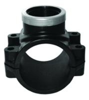 Supa Lock universalt anboringsklammer med sperre til anboring under trykk på duktiljern, stål og andre metallrør. Til drikkevann og nøytrale væaker opp til maks. 70 °C. Supa Lock™: Enkel to-stegs montering ved å stikke Supa Lock™ spissende inn i Supa Lock™ muffe, og dytte på plass låseringen, som står på spissende av ventiler og fittings. Låseringen er enkel å montere/ demontere, og fungerer som en ekstra sikkerhet for Supa Lock™ systemet og forhindrer uønsket demontering under drift. Koplingen består av to kraftige O-ringer produsert i drikkevannsgodkjente EPDM gummi. O-ringene er plassert på spissenden av ventilene og fittings. Supa Lock™ utløpet er designet med en rotasjonsstopp for å hinder en rotasjon under selve boreprosessen. Fullt gjennomløp Ø32mm for standard bor dimensjon (for DN50 - DN80 er største bor Ø26mm). Overdelen til klammeret i duktiljern består av en anboringssperre som ofte blir brukt som en midlertidig avstengningsventil under boreprosessen. Overdelen er også designet for en enkel montering av bøylen. Underdelen består av en 50mm bred bøyle i rustfritt stål AISI 304 med gummipakning innvendig som beskytter røret. M16 antifriksjonsbelagte bolter av rustfritt stål A2 med POM skiver for maksimal fleksibilitet under montering. M16 sylindermuttere, boret og gjenget, med bøylen rullet rundt for lang levetid uten bruk av sveisemetoder. Gummipakningen på klammeret er av EPDM gummi. Glassforsterket POM kassett med gummipakning av drikkevannsgodkjent EPDM. POM deksel med NBR pakning for permanent forsegling etter at anborringen er utført. Fullstendig tetthet oppnås med O-ringer mot overdel av klammer, og to profilerte O-ringer forsegler mot spionen. Epoxybelagt iht. DIN30677-2, GSK godkjent.