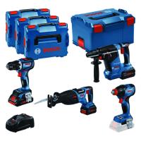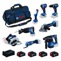 18V XR 8-delers sett med børsteløst verktøy, slagdrill DCD996, slagtrekker DCF887, vinkelsliper DCG405, sirkelsag DCS565, bajonettsag DCS367, SDS-Plus roterende hammer DCH273, multikutter DCS356, arbeidslampe DCL050, 4 x 5,0 Ah batterier, dobbel lader og TSTAK VI x 3, TSTAK II og TSTAK-tralle