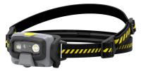 Fokuserbar hodelykt med justerbart lampehode. Tre lysmoduser og rødt lys, fast eller blinkende. Maks 520 lumen. Lyset fokuseres via linseringen. Slå av ved bare å trykke på én knapp uavhengig av lysmodus (aktiv i mer enn 5 sekunder). Kompatibel med oppladbart batteri som kan bestilles separat. Leveres med avtagbart elastisk pannebånd, hjelmfeste, 3M dual-lock borrelås og 3xAAA-batterier.