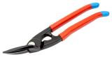 Universalplatesaks med lange skjær, 75 mm. Med utveksling. Ergonomisk utformede håndtak i tokomponent materiale. Klipper stålplater, nett, gulvmatter, gummi, osv. Klippekapasitet stålplate 1,0 mm, kobberplate 1,2 mm.