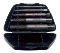M 5-M 16, 3/16"-5/8", 25 deler, i grønn plastkassett. 5 HSS kvalitetsspiralbor (3,2, 4,8, 6,4, 8, 8,7 mm) 5 uttrekkerstifter av spesialstål størrelse 1-5 for M5-M16 5 uttrekkermuttere størrelse 1-5 10 borforinger størrelse 1-10