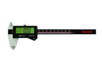 Standard digitalt skyvelære i rustfritt stål med solid metallhus. Målinger fra 0-150 mm med 0,01 mm avlesning og kjeve lengde på 40 mm. Automatisk on/off -funksjon, tilbakestilling, mm/desimal, tomme/fraksjon, flat dybdedimensjoner. Leveres i en solid plastboks for lagring.