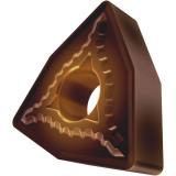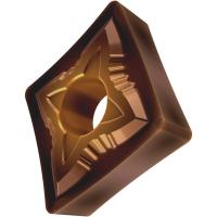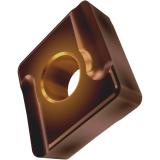 Dobbelendet skjær for generell sporing og dreiing. Første valg for langsgående dreiing og sporing, Geometri med positiv T-land for lengre levetid på verktøyet på grunn av lave skjærekrefter og redusert risiko for påkledning på skjæreggen. WC-Co-basert substrat submikron-kornet gir høy hardhet og resistens mot slipeslitasje, resistens mot kamsprekker, PVD-belegg gir bedre varmesprekkmotstand og ytelse i drift som involverer svingninger i skjæretemperatur, AlTiN-lag tilbyr overlegen oksideringsmotstand, varmehardhet og optimal kraterslitasjeresistens, som øker produktivitet og/eller forlenger verktøyets levetid (holdbarhet), TiN-topplag tilbyr enkel slitasjegjenkjennelse, reduserer oppbygd kant, Gradering med balansert hardhet og seighet gir grunnlaget for allsidig og produktiv fresing, og kombinerer høye skjærehastigheter og matehastigheter.