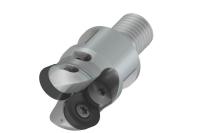 Radie planfres med dobbel negativ geometri som benytter 2 av RD.. 1604MOT eller RDHT 1604MO-FA enkelsidig skjær, skjærdiameter til maksimum 32mm med M16 gjenget skaft for standard modulær verktøyholder, 42mm funksjonell og 65mm skjærlengde, innvendig kjøling til planfresing, koierfresing, ramping, progressive dykkfresing and spiral interpolerings fresing med maksimum kuttdybde på 4mm.