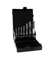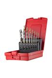 Sett med seks gjengetapper M3-M10 samt seks bor med 1/4" bitsfeste. Bor som passer til respektive gjengedimensjoner. For service, reparasjoner og vedlikeholdsarbeid. For direkte montering på elektriske håndmaskiner. 6 stk. gjengetapper, M3, M4, M5, M6, M8 og M10. 6 stk. bor, 2,5, 3,3, 4,2, 5,0, 6,0 og 8,5 mm