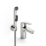 Azur ECO servantbatteri i avsinkningsfri 4MS godkjent messing, med energi- og vannbesparende perlator. Sidedusj, kaldstart og pop-up ventil.