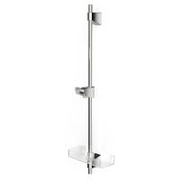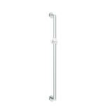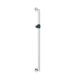 Vertikal skinne med støtter vinkelrett på veggen, montering og dusjhodeholder. Festeavstand 1100 mm, 88 mm dyp. Skinnediameter 32 mm, rørtykkelse 2 mm, rosediameter 70 mm. Laget av rustfritt stål, sateng. Egnet for dusjhoder fra forskjellige produsenter. Dusjhodeholderen kan vippes kontinuerlig, og etter å trykke på en stor trykknapp kan dens høyde justeres. Konisk adapter på dusjhodeholder gjør det lettere å hekte inn dusjhodet. Inkludert ikke-korroderende og testet HEWI festemateriale for veggmontering og tettebånd for tetting av borepunktene.