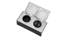 Stikkontakt og USB uttak til montering i baderomsmøbel. Monteringstape medfølger.