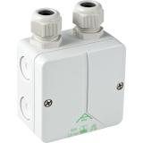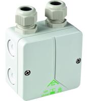 Kapslet boks med inngang og utgang. Kapslede bokser kan ligge bak wc-skål.