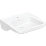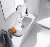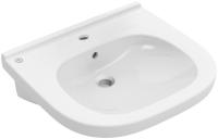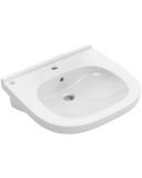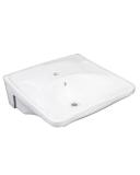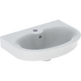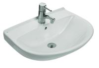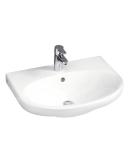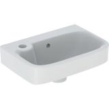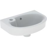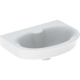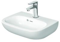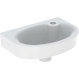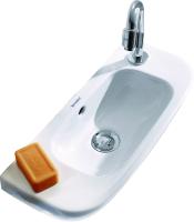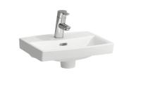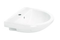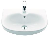 Porsgrund Glow servant, rund, asymmetrisk kranhull, forseglet overløp, kranhull høyre og venstre. Liten og praktisk servant i porselen med dypt basseng og god avsettingsplass i bakkant. Uten overløp, til bruk på sykehus og lignende. Porselenets Smart-glasur gjør servanten enkel å holde ren. 400 mm.