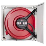 Brannslangetrommel i isolert og oppvarmet skap for montering på vegg utendørs eller i korrosive miljø. Slangetrommel er montert på en arm som svinger 180°. Kan lett tas ut av skapet og montering utføres av én person. Skapet er laget av rustfritt stål og er isolert og oppvarmet med termostatstyrt varmeelement. Det tåler temperaturer ned til –35°C (målt ved vindstille) uten at vannet fryser. For bruk utendørs og i korrosive miljø som parkeringshus.