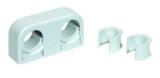 Rekkeklammer for montering av 25 mm rør i rør. Klammeret er i sinkbelagt stål (0,8 mm) og tåler derfor montering både med skrudrill og spikerpistol. Det kan klippes av i ønsket lengde/antall, og har "lepper" i toppen av hver bøyle slik at ikke trekkerørene glir under montering. Klammeret er rast og enkelt og montere. Rekkeklammeret kommer i kasser à 250 stk pr. kasse. Klammeret er rullet opp på en trommel inni i kassa og er derfor meget enkelt å trekke ut, og derfor også enkelt å skyve tilbake i kassa.