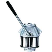 Håndpumpe for olje og vann. Håndtak, stempelstenger,skruer og muttere i stål. Håndgrep i gummi. Hus, ventilhus og stempler i støpt aluminium. Pakninger i nitrilgummi. Sylindere i rustfritt stål.