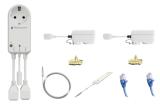 Flat sensorplate med dobbeltsidig tape. 1.5 meter lang, kan kappes til ønsket lengde. Utlegging av sensortape må gjøres slik at det er gunstig for overvåking av vannlekkasjer, samtidig som normal bruk av vanninstallasjonene ikke påvirker systemet. Ekstrakablene kobles i vannfølerne og hovedenheten, for å utvide «deteksjonsområdet». De monteres enkelt ved å presse lederne inn i hvert sitt hull på terminalblokka. Sjekk at begge lederne har god kontakt. Det er ingen pluss eller minus på disse, og de kan derfor ikke kobles feil.