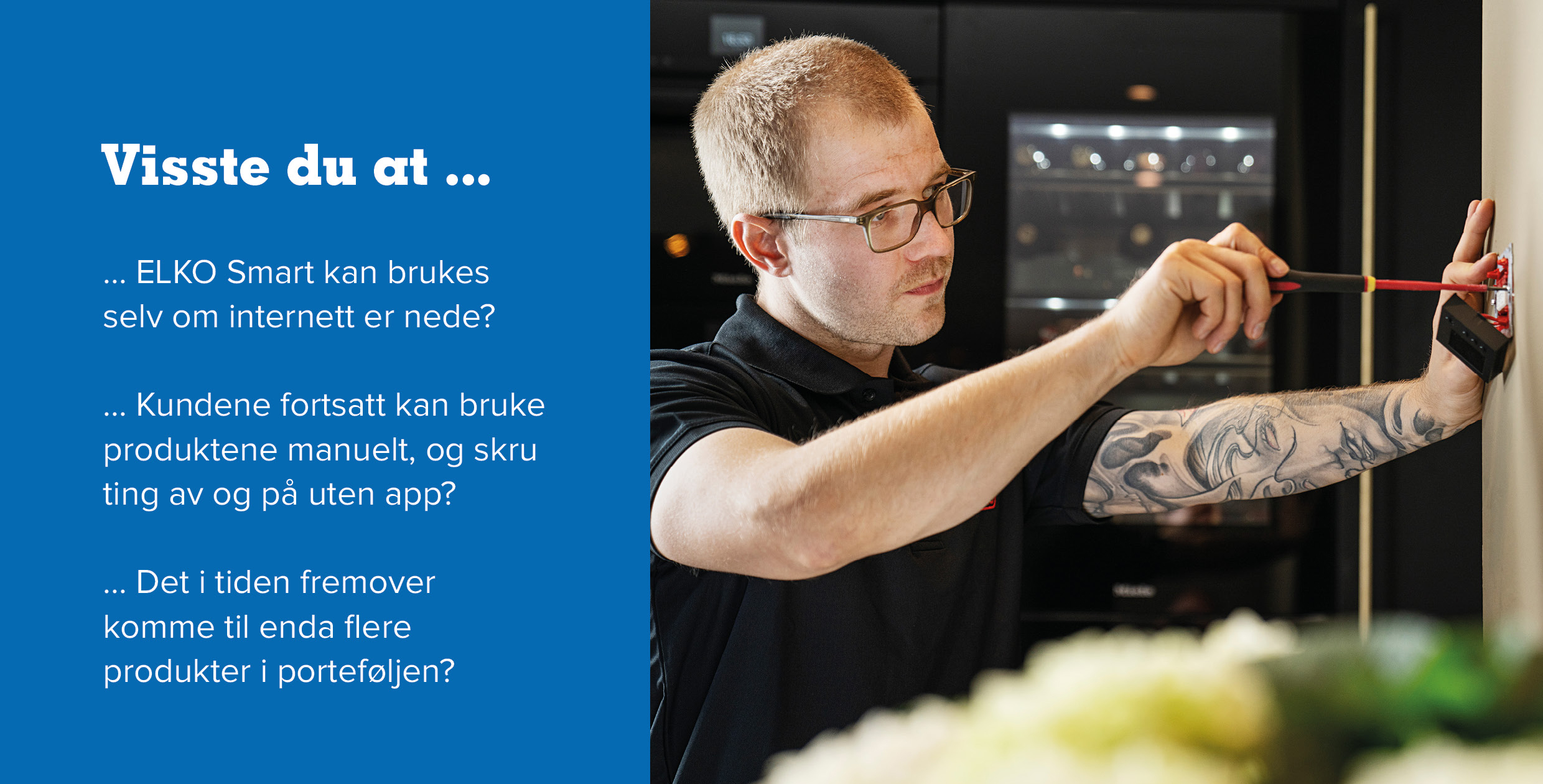 — Mange som ikke har prøvd konseptet ennå kommer innom oss og lurer på om systemet er enkelt å koble opp, og om det er enkelt for deres kunder å overta det. De fleste vil jo unngå mye arbeid i etterkant av installasjonen, og det unngår du absolutt med ELKO Smart. Når systemet først er koblet opp er det svært enkelt for sluttbrukeren å ordne resten – en trenger ikke være ekspert på data for å bruke appen, sier han.