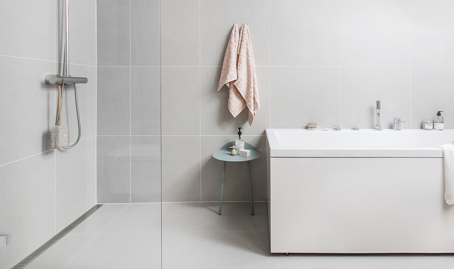 – Tilstrekkelig fall på baderommet er viktig og har jo vært en utfordring opp gjennom årene. Med et designsluk i enden av dusjsonen er det enklere å bygge fall, siden det er ensidig. Man kan også bruke større flis på gulvet, utdyper han.