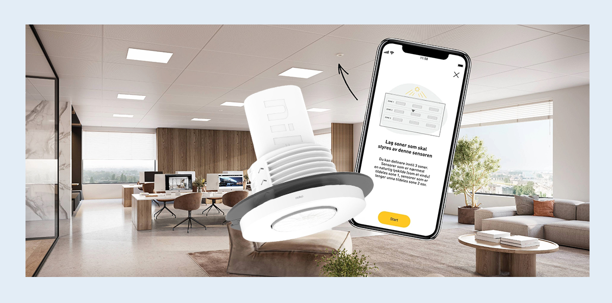 — Når systemet er satt opp riktig vil armaturer nære store vindusflater – der det er mye naturlig lys – være dimmet mer enn armaturer lenger inn i rommet. Resultatet er behagelig lys gjennom hele rommet.
