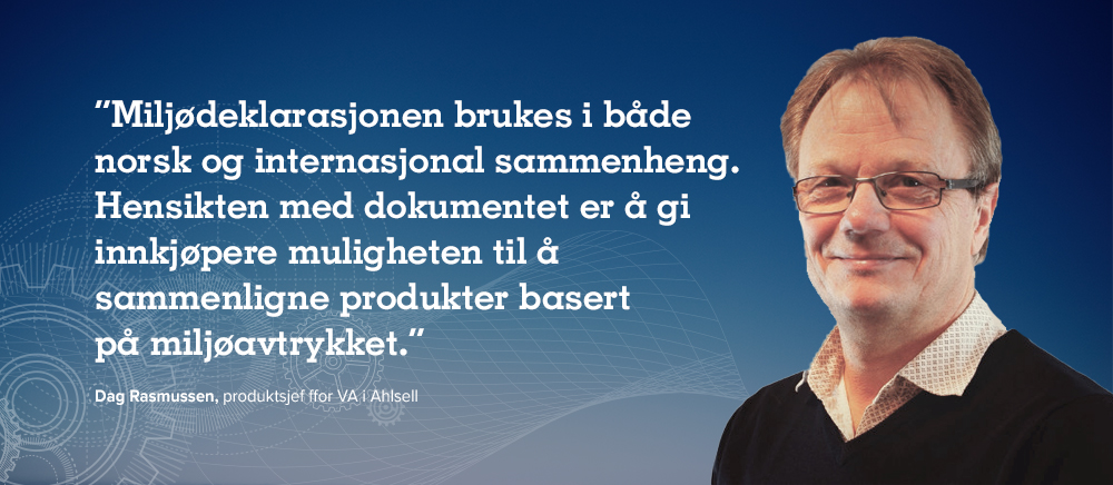 — Miljødeklarasjonen brukes i både norsk og internasjonal sammenheng. Hensikten med dokumentet er å gi innkjøpere muligheten til å sammenligne produkter basert på miljøavtrykket, sier Ahlsells Dag Rasmussen, som er produktsjef for VA.