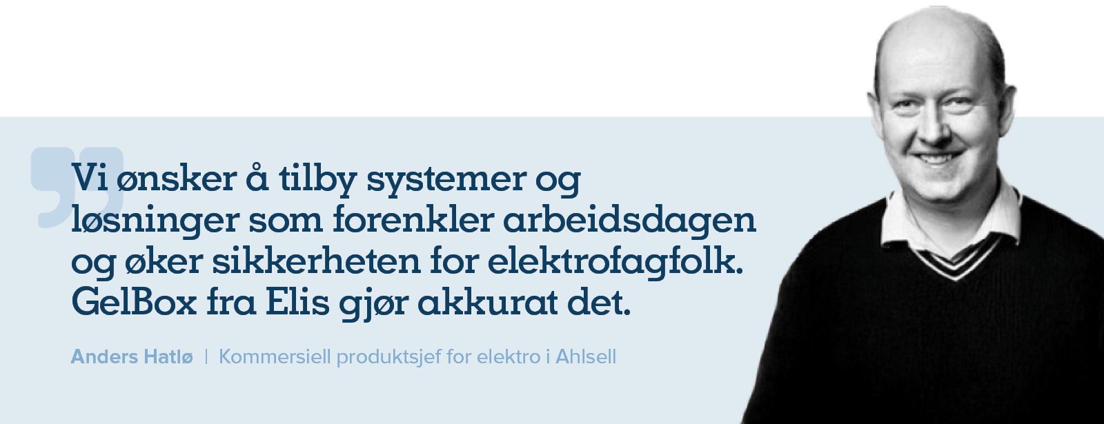 – Vi ønsker å tilby systemer og løsninger som forenkler arbeidsdagen og øker sikkerheten for elektrofagfolk. GelBox fra Elis gjør akkurat det. Kombinasjonen av enkelhet, fleksibilitet og lang levetid gjør disse produktene ganske unike, sier han, og legger til: – Hos Ahlsell får du produktene kombinert med fagkompetanse fra spesialister som kjenner din hverdag og vet hva som skal til, sammen med tilgang til nettbutikken vår som alltid er åpen.