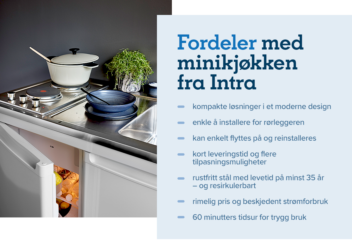 — Så lenge det finnes vanlige schuko-stikkontakter tilgjengelig, kan rørleggeren levere hele kjøkkenet selv, uten hjelp fra elektriker. Plasser kjøkkenmodulen på ønsket sted, koble på vann og avløp og sett i stikkontaktene, forteller VVS-ansvarlig i Intra, Rune Nilsen.