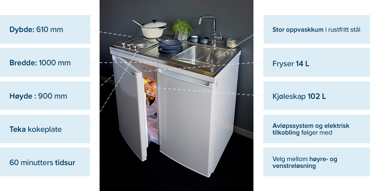 Grunnmodellene er lagerført hos Ahlsell, slik at du kan få minikjøkkenet levert allerede neste dag, uansett hvor i landet du befinner deg.