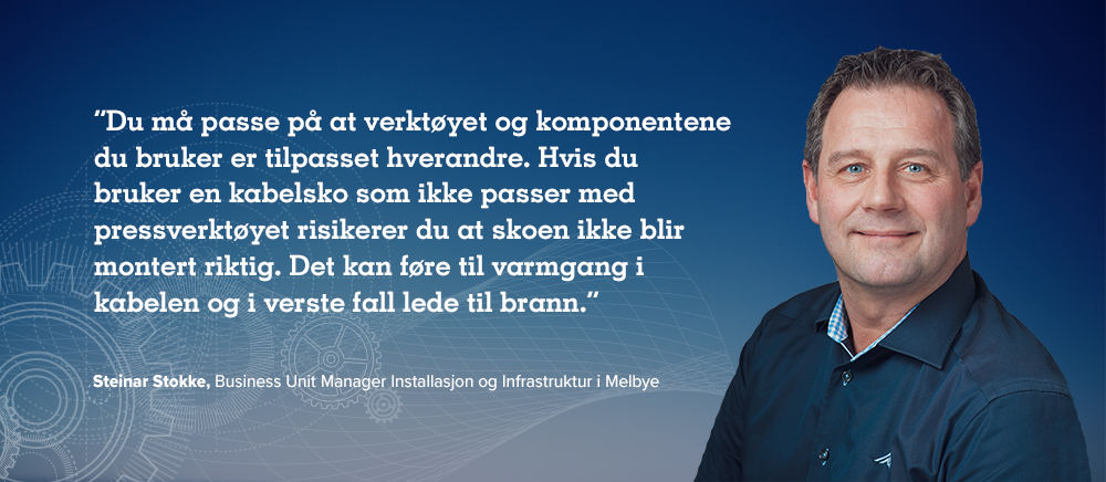 — Du må passe på at verktøyet og komponentene du bruker er tilpasset hverandre. Hvis du bruker en kabelsko som ikke passer med pressverktøyet risikerer du at skoen ikke blir montert riktig. Det kan føre til varmgang i kabelen og i verste fall lede til brann, innleder han.