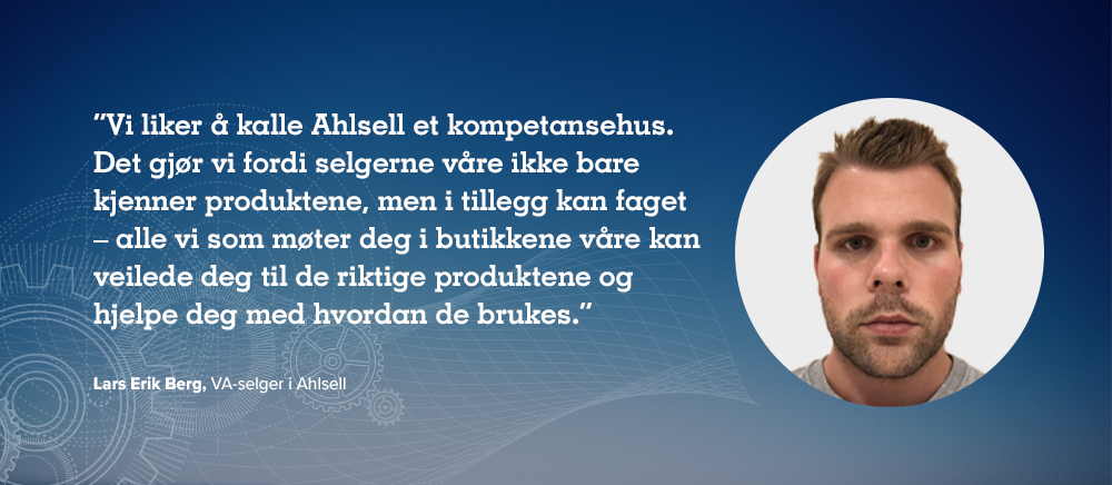 – Vi liker å kalle Ahlsell et kompetansehus. Det gjør vi fordi selgerne våre ikke bare kjenner produktene, men i tillegg kan faget – alle vi som møter deg i butikkene våre kan veilede deg til de riktige produktene og hjelpe deg med hvordan de brukes, avslutter Lars.