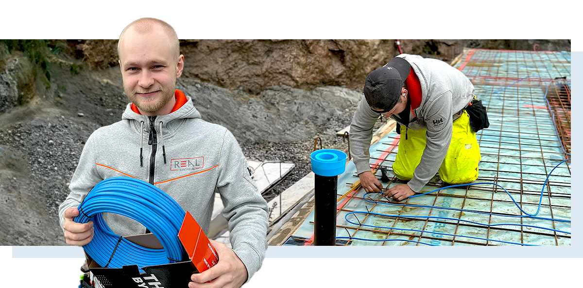 Chris Hessenøby og Marius Johansen er henholdsvis montør og lærling i Real Elektro. Etter å ha testet og installert varmekabelen, er begge fornøyd.