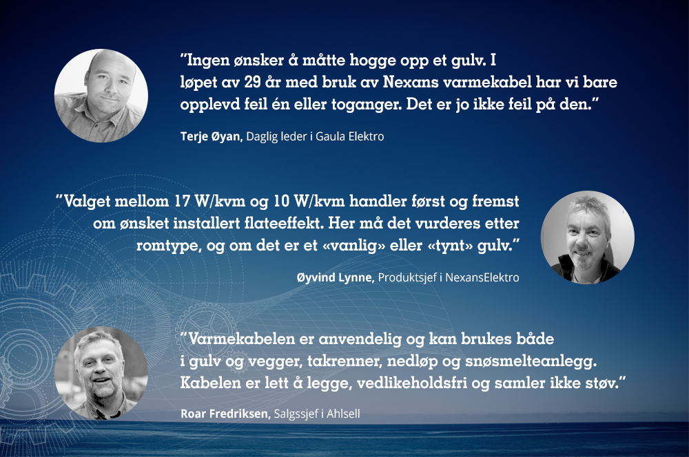– Kablene kan brukes i alle typer gulv. Valget mellom 17 W/kvm og 10 W/kvm handler først og fremst om ønsket installert flateeffekt. Her må det vurderes etter romtype, og om det er et «vanlig» eller «tynt» gulv, forklarer Øyvind Lynne i leverandøren Nexans.