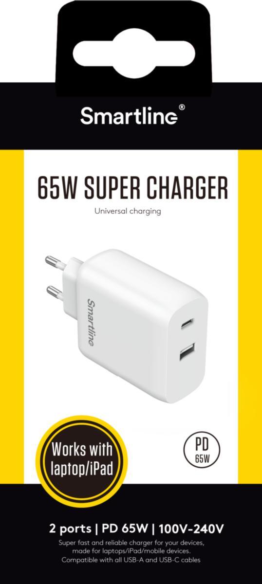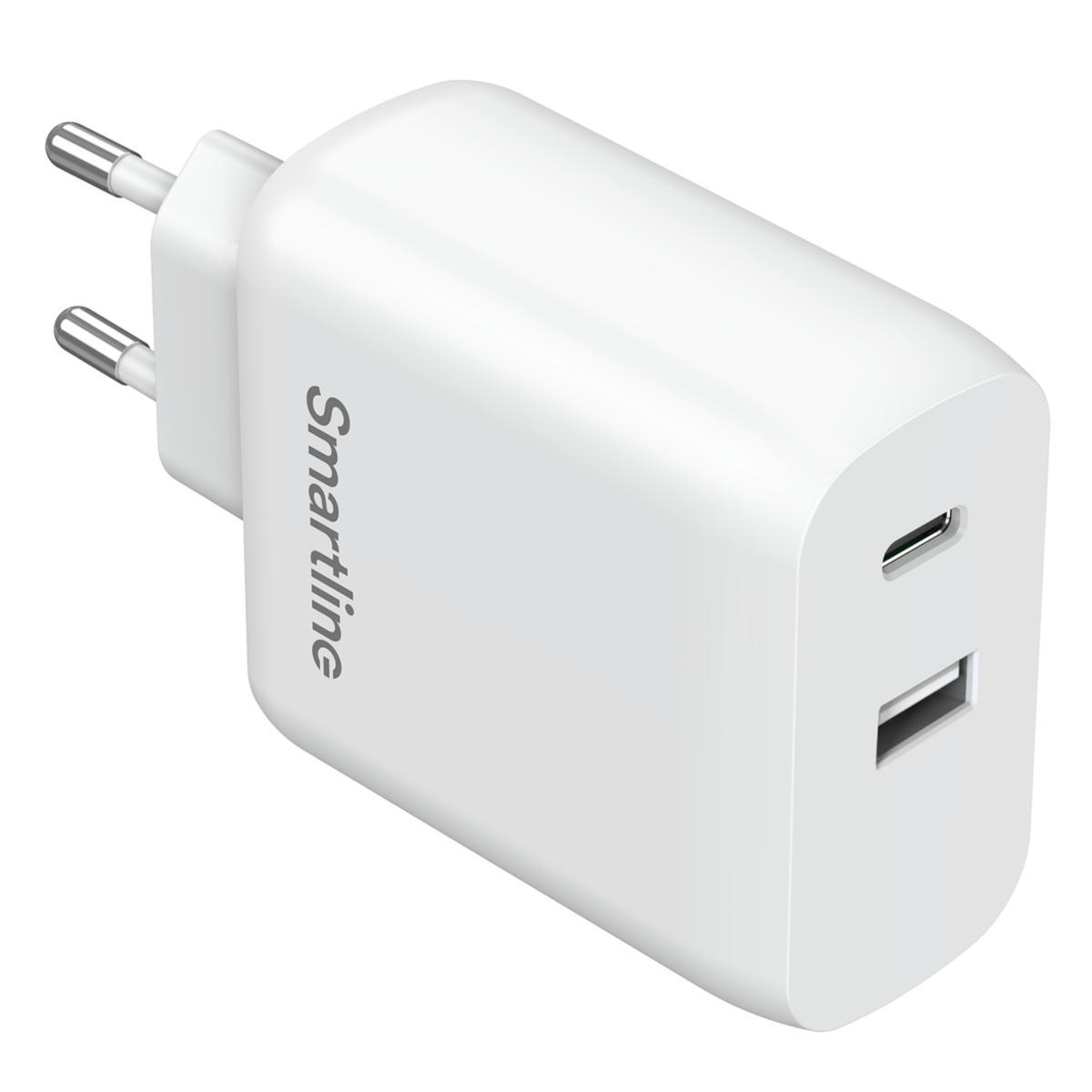 Vegglader Usb-C + Usb-A Pd 65 W + Qc 12 W Hvit Smartline