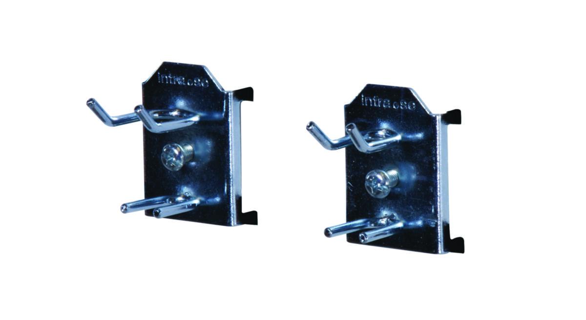 Krok for oppheng av ulike leddnøkler. Forzinket. Kroken passer perforerte paneler, der den hakes i platens perforering og låses med stoppskrue.
