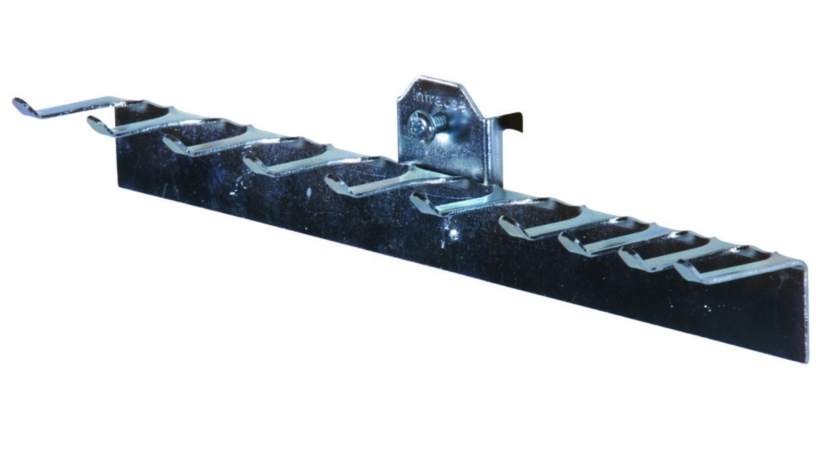 Kroken passer perforerte paneler, der den hakes i platens perforering og låses med stoppskrue.