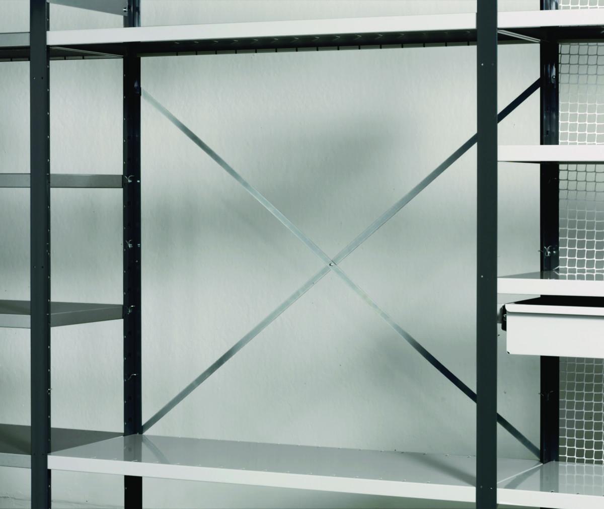 Krysstag for V06 småvarereol - brukes til avstiving av reolen. Ved bestilling av start- og følgefag, følger krysstaget med leveransen. Ved bygging av egen reol, trenger du bare krysstag på hvert andre fag i lagerreolen.