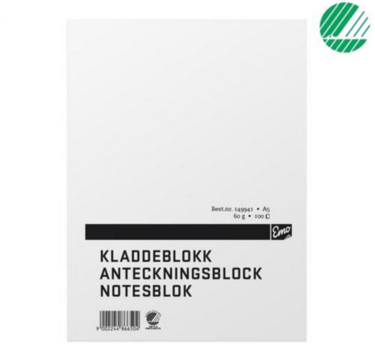 Kladdeblokk A5 Ulinjert 60g EMO 100 sider